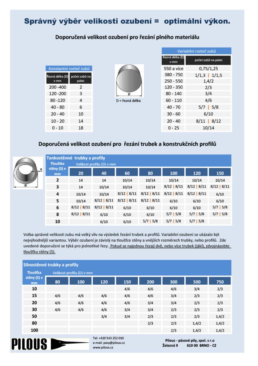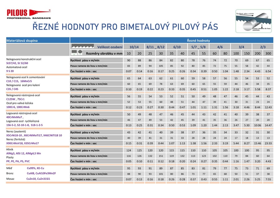 1. Podle níže uvedených řezných rychlostí vyberte vhodnou rychlost dle děleného materiálu.